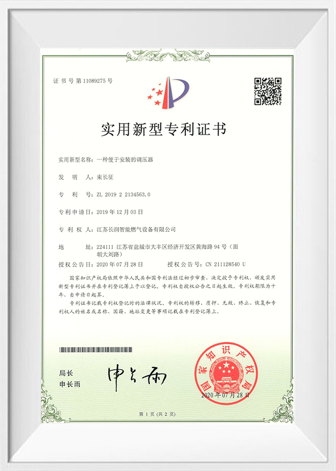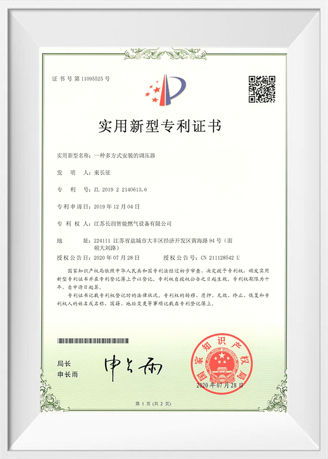Jiangsu Changrun Intelligent Gas Equipment Co., Ltd. is a professional manufacturer engaged in the production of gas transmission and distribution equipment and gas pressure regulators. It is a professional manufacturer integrating the research and development, design, manufacturing, marketing and after-sales service of gas equipment. The company covers an area of 10,000 square meters, with a registered capital of 50 million yuan, assets of 200 million yuan, an annual production of more than 10,000 units, and sales revenue of more than 100 million yuan. It has a team of high-quality technical and management talents, adopts advanced design technology and design methods, uses AutoCAD computer-aided design and advanced CNC processing equipment for fine processing, so that the product is optimized from design to production, and the product quality meets or exceeds the standards, and the market is all over the country.